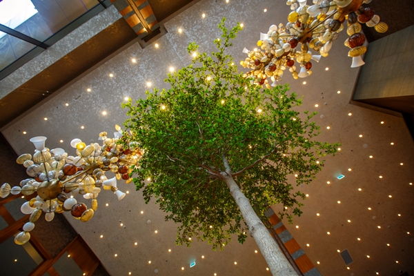 Imaginea din lobby pare desprinsa dintr-un tablou de inspiratie mediteraneana, ale carui „vedete” sunt cei trei maslini negri. De jur imprejurul copacilor au fost amenajate canapele, astfel ca cei care lucreaza in spatiile office se pot bucura de o pauza in mijlocul „naturii”, fara sa iasa din cladire. Tabloul natural este completat de alti 25 de artari, carpeni si ginkgo biloba, care imprejmuiesc terasele exterioare ale cladirii, de la etajele 1 si 2.