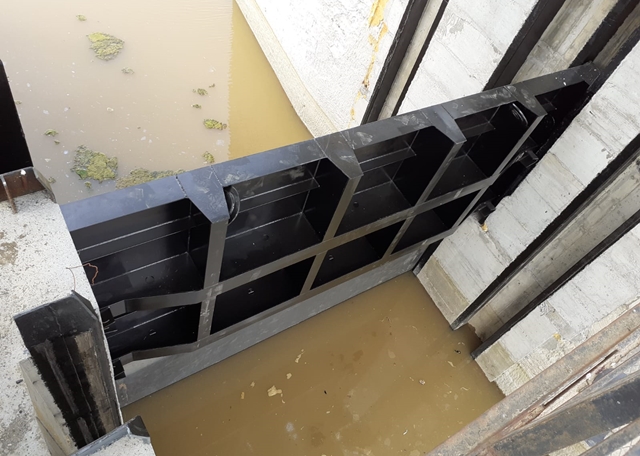 Astfel, au fost efectuate probe de lansare in ghidaje a batardourilor metalice amonte si aval de stavila plana dubla Stoney, a fost plasata pe pozitie stavila plana dubla Stoney si a fost montat esafodajul de reazem al echipamentelor de manevra a stavilei plane duble Stoney.