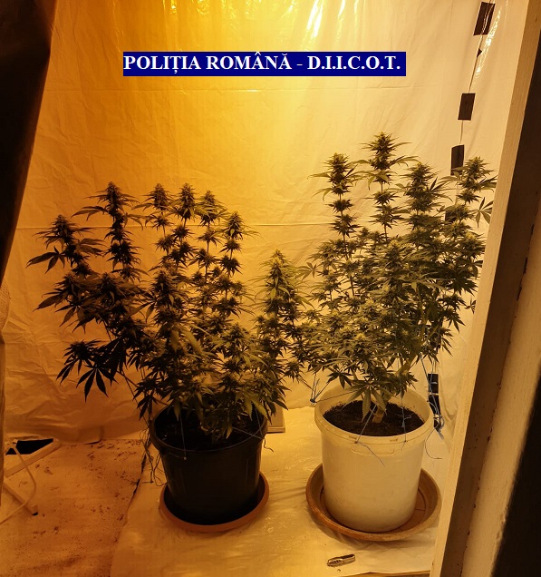 La aceeasi data, procurorii DIICOT – Biroul Teritorial Arad impreuna cu ofiteri de politie judiciara din cadrul SCCO Arad au efectuat 3 perchezitii domiciliare, pe raza judetului Arad, in urma carora au fost identificate 3 plantatii de cannabis si au fost ridicate 61 de plante in diferite stadii de dezvoltare, 30 de grame de cannabis, 6 lampi, 2 ventilatoare, tubulatura, 5 grindere, 3 cantare, 1 pistol cu gaz, un cort pentru plantatii indoor, precum si suma de 2.050 de lei.