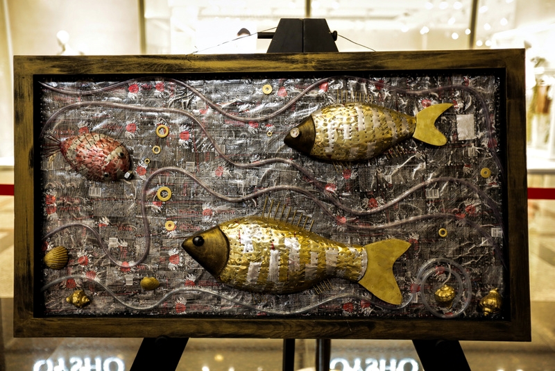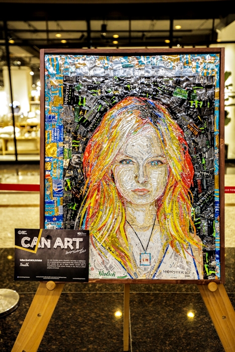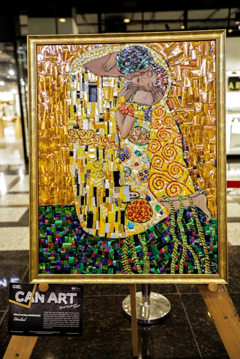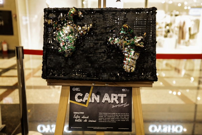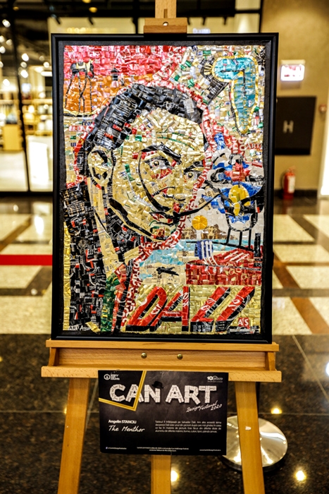 Pana sambata, 05 septembrie 2020, in Atriumul din Iulius Mall sunt expuse tablouri ingenioase, confectionate din doze de aluminiu.