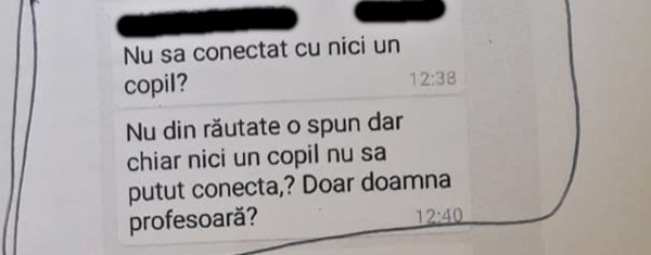 Lipsa de empatie a dascalilor cu elevul din clasa a VI-a, transferat cu un an in urma de la o alta scoala din oras, care putea fi ajutat sa treaca peste efectele bolii, se contureaza chiar si din discutiile online cu diriginta clasei si cu alti profesori, discutii care au fost atasate la dosarul trimis la minister.