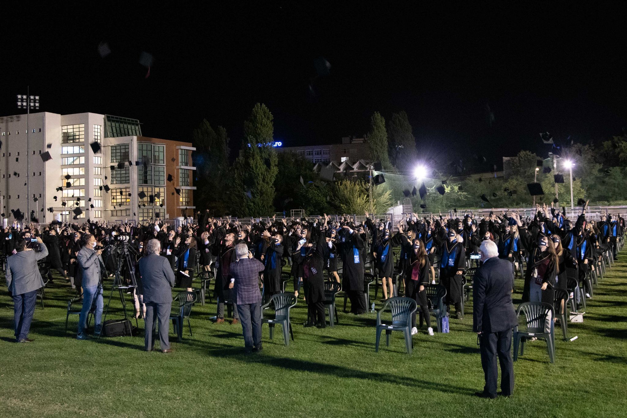 Peste 500 de absolventi ai Universitatii Politehnica Timisoara, promotia 2020, au fost prezenti, duminica seara, in 20 septembrie 2020, la festivitatea de absolvire a studiilor, care s-a desfasurat pe pe stadionul Stiinta.
