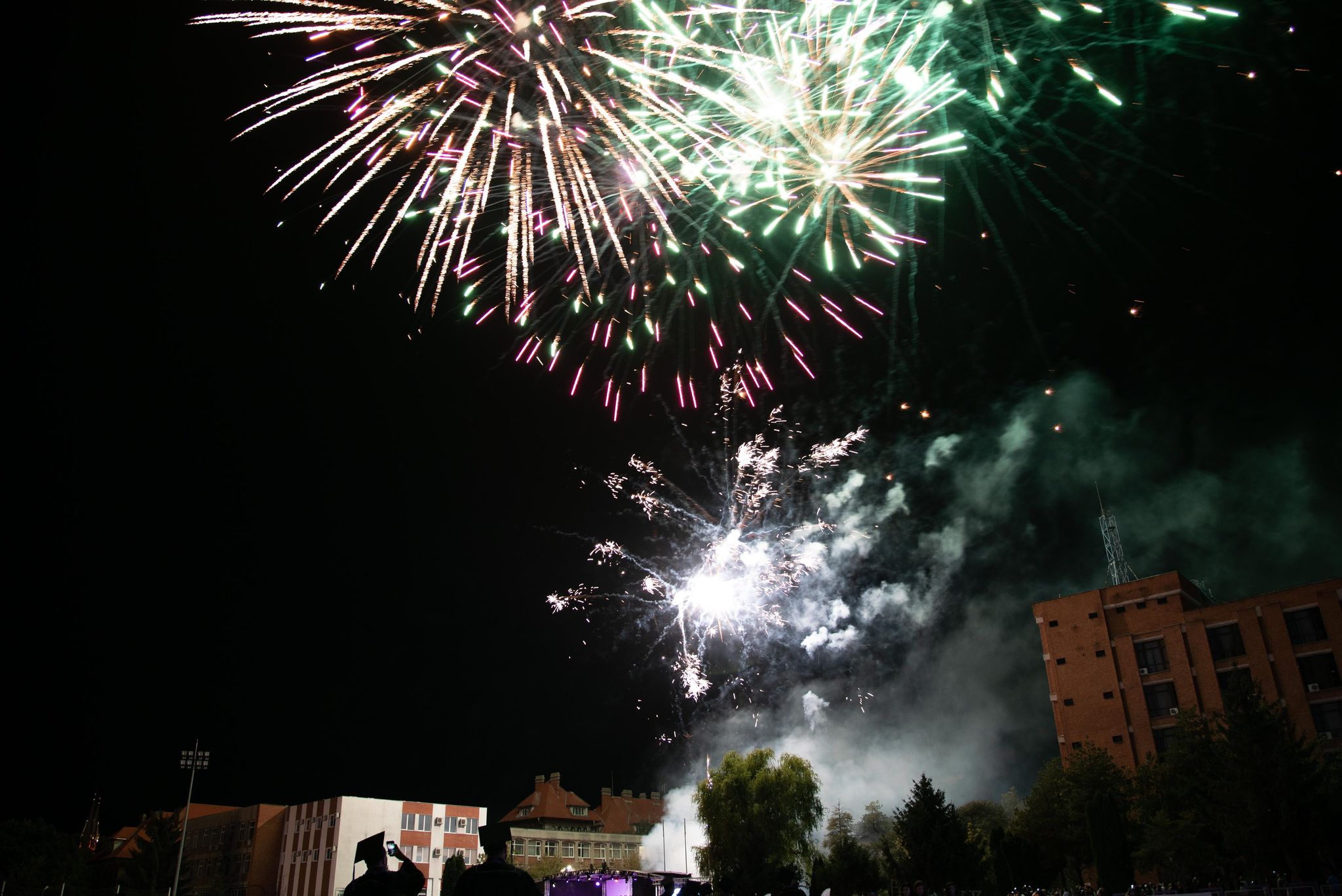 Ceremonia a fost presarata cu momente muzicale sustinute de orchestra Asociatiei Art Time si de corul Universitatii Politehnica Timisoara, care a interpretat traditionalul Gaudeamus, iar finalul festivitatii a fost luminat de un impresionant foc de artificii. (I.P.)