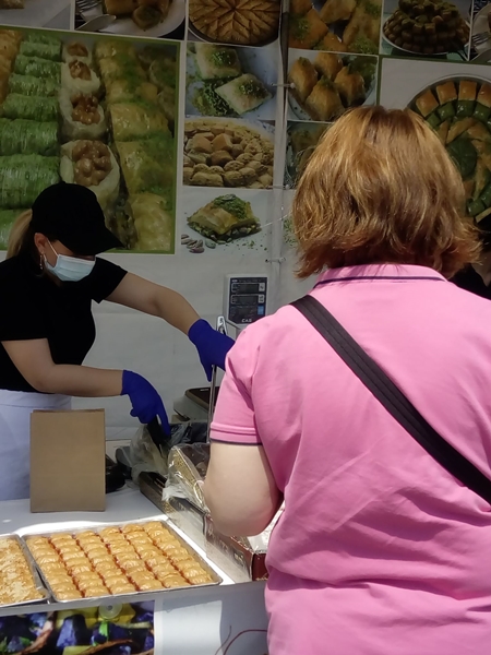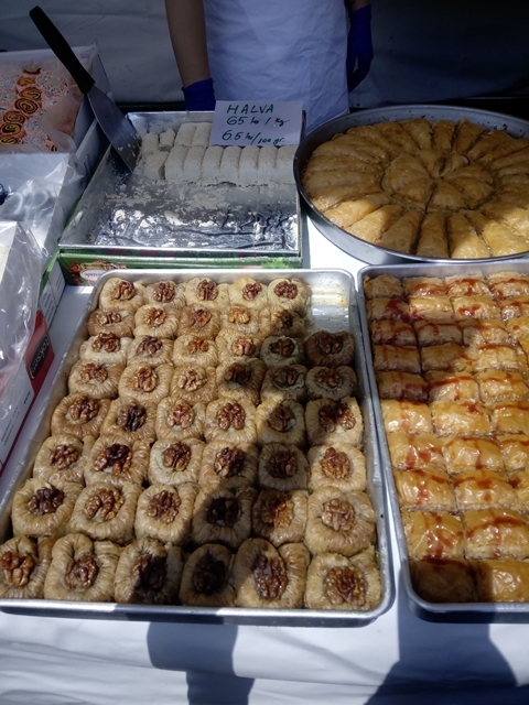 Gusturi care te poarta, undeva, pe plajele insorite ale Mediteranei. O gama variata de baclava cu nuca, cu fistic, rahatul cu diverse ingrediente sunt delicii care pun la incercare papilele gustative ale celor prezenti la locul evenimentului, veniti special pentru acest festival sau doar in trecere. (L.K.)