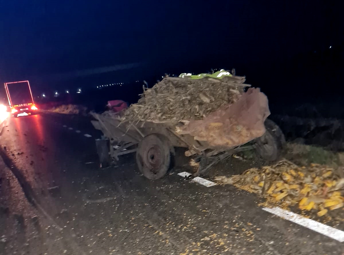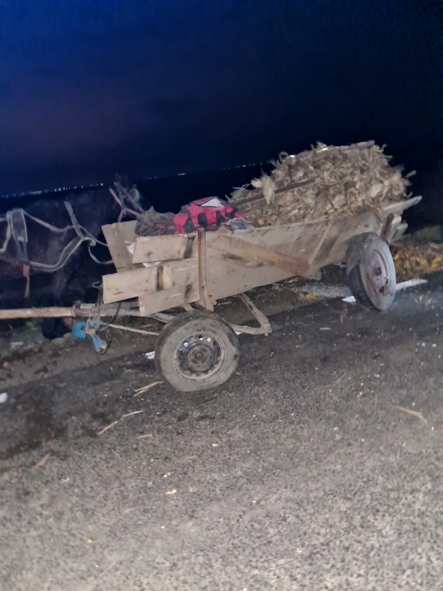 Atelajul era incarcat cu stiuleti de porumb, culesi, probabil, de pe un camp din apropiere, motiv pentru care „agricultorii” de etnie tiganeasca incercau sa atraga atentia cat mai putin pe sosea.