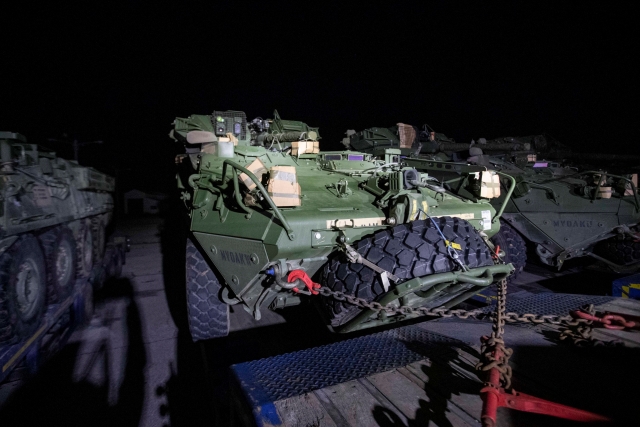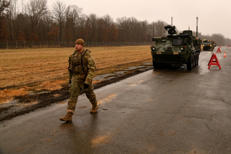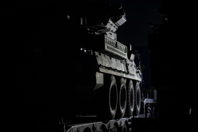 Regimentul 2 de Cavalerie va mobiliza un escadron de cavalerie in Romania, ca masura care arata angajamentul nostru pentru Alianta NATO. In spatele meu si in jurul nostru puteti vedea aceste cuvinte devenite realitate. Soldatii nostri pregatesc pentru transport vehiculele Stryker si alte echipamente importante pentru misiune, iar primii soldati din Regimentul 2 de Cavalerie au ajuns in Romania in ultimele 24 de ore.