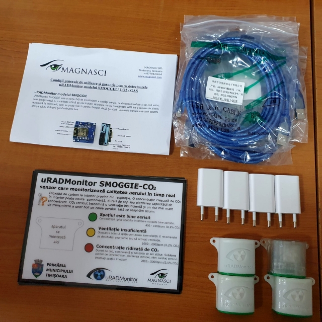 Primaria Municipiului Timisoara a montat senzori pentru detectia dioxidului de carbon, a nivelului de temperatura si umiditate la cinci scoli din oras. Setul de 20 de senzori a fost donat Primariei Municipiului Timisoara de uRADMonitor.