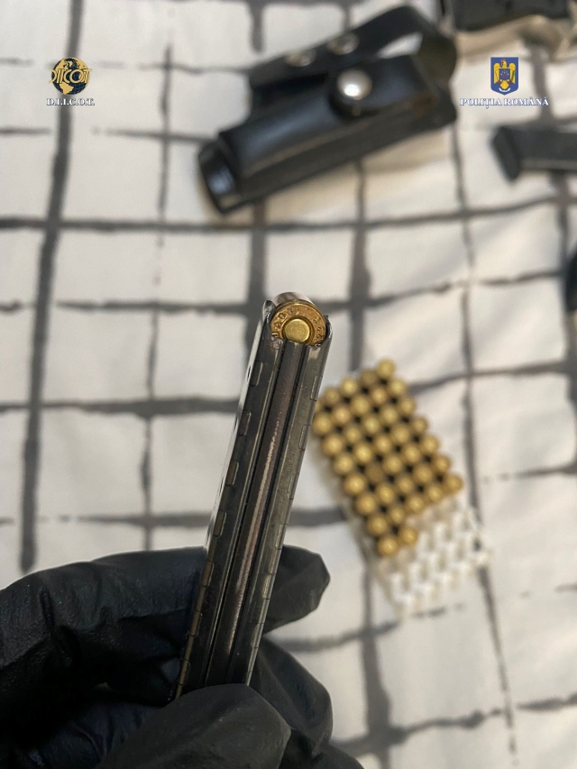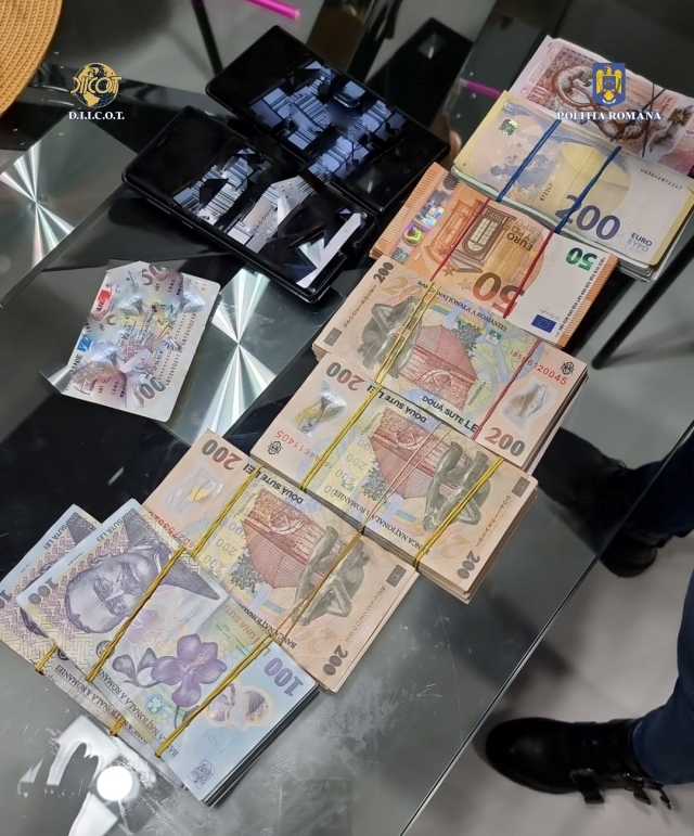 In urma perchezitiilor domiciliare efectuate au fost descoperite si ridicate 2 portofele fizice de moneda virtuala, 26 telefoane mobile, 27 unitati de stocare, 7 laptopuri,1 tableta, 21 OBU (On Board Unit), 52 de carduri din plastic prevazute cu banda magnetica,un card alb fara banda magnetica, 76 carduri bancare, 30 grame substanta vegetala de culoare brun maronie susceptibila de a fi canabis, 4 pistoale din care unul cu bile din plastic (airsoft) si trei cu bile de cauciuc, precum si sumele de 134.100 lei, 12.420 euro, 100 dolari canadieni si 2.100 lire sterline.