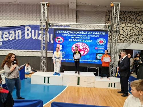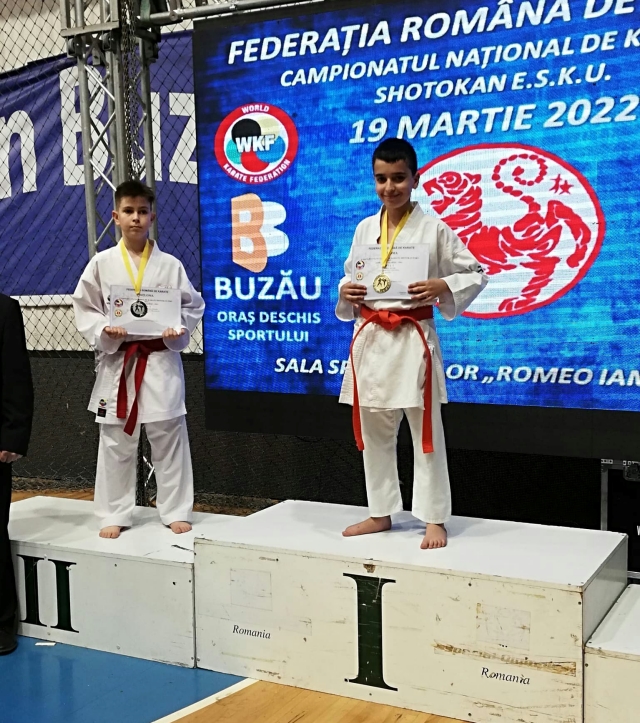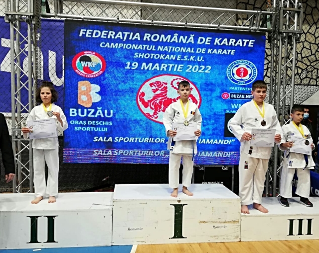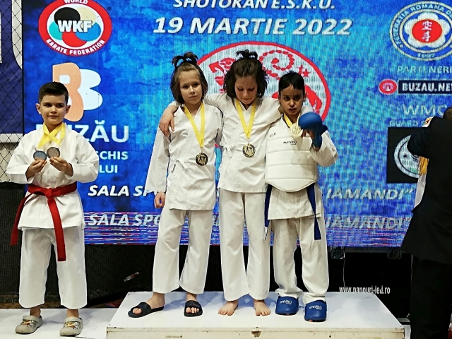 Astfel, micutii karatisti din Timisoara s-au intors de la Campionatul National de Karate Shotokan ESKU, desfasurat in 19 martie, la Buzau, in organizarea Federatiei Romane de Karate, singura recunoscuta olimpica, cu nu mai putin de 32 de medalii, dintre care 11 de aur, 9 de argint si 12 de bronz.