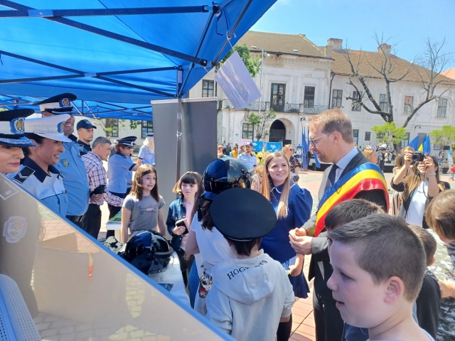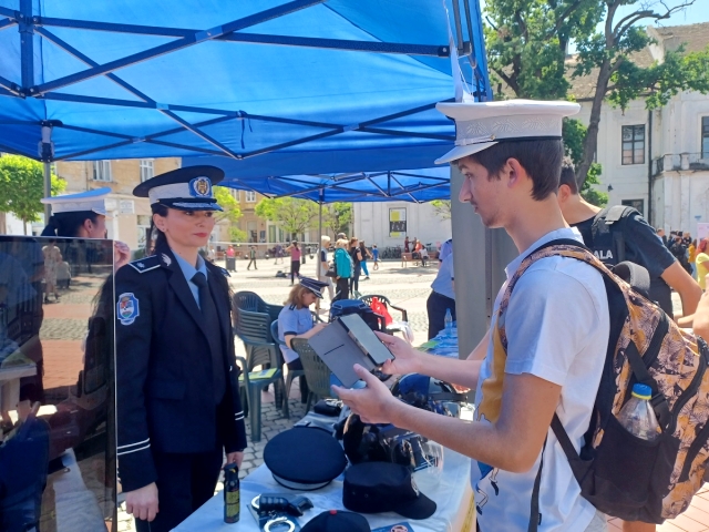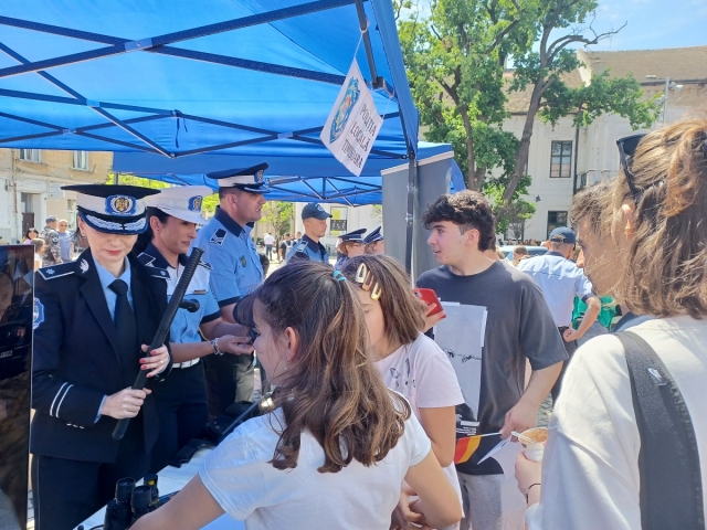 Pavilionul nostru de prezentare, unde au fost expuse elementele din dotarea politistilor locali, precum si pliante informative, a fost vizitat de foarte multe persoane, oficialitati, dar si de copii si adulti, interesati atat de elementele de autoaparare si interventie, de atributiile institutiei noastre, cat si de consiliere.