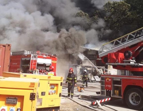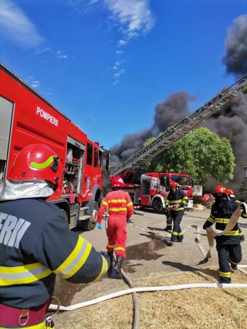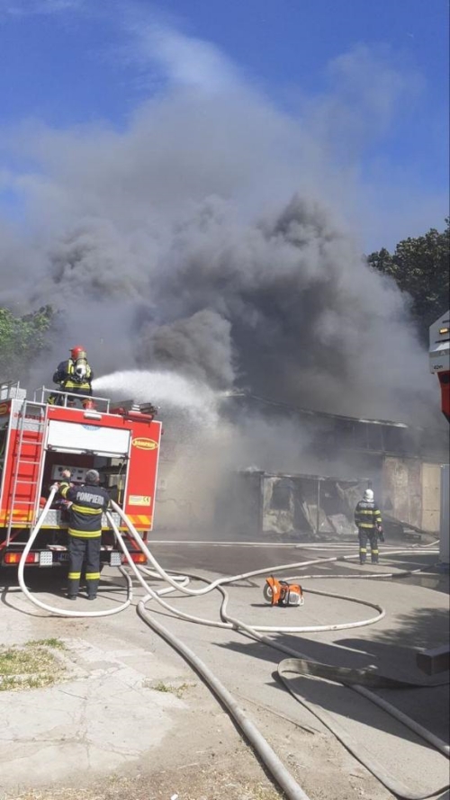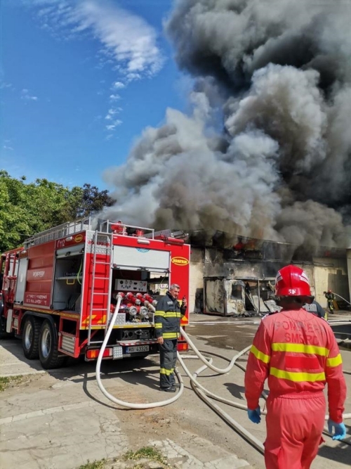 VIDEO Incendiu violent la o hala de scule de la periferia Timisoarei. Pompierii de la ISU Banat s-au luptat cu flacarile aproape doua ore