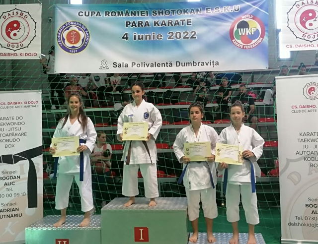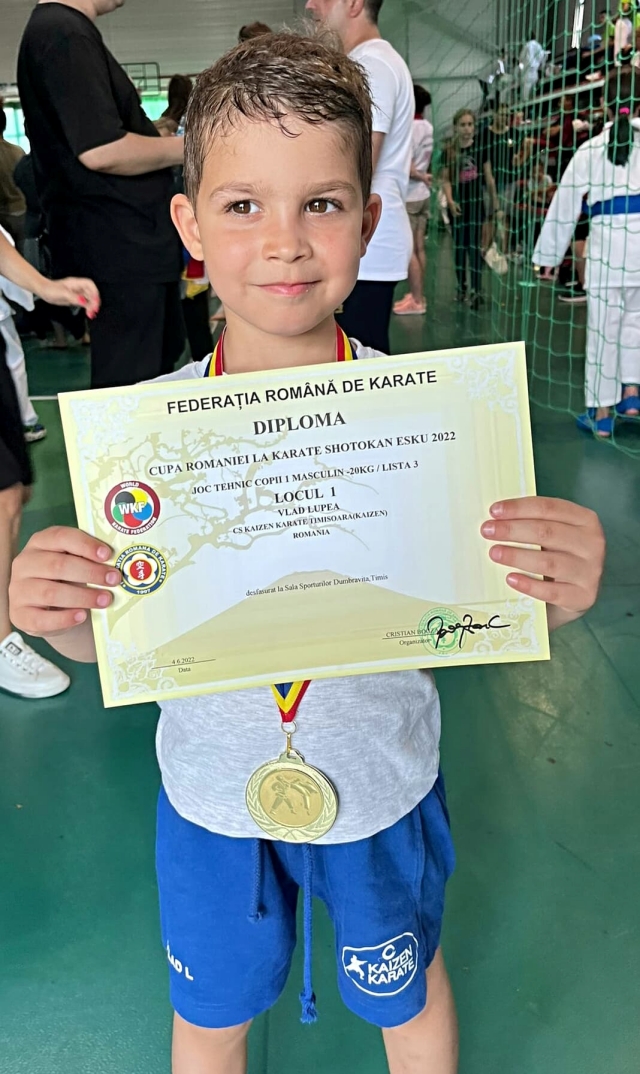 Clubul ACS Kaizen Karate Timisoara a participat, sambata, 4 iunie, la Cupa Romaniei, cu un numar de 28 sportivi, care au reusit sa obtina, fiecare, minim cate o medalie. La aceasta competitie competitia nationala organizata de Federatia Romana de Karate, care s-a desfasurat in localitatea timiseana Dumbravita, s-au inscris aproximativ 450 de sportivi din toata tara, care provin de la cele peste 20 de cluburi din comisia ESKU a federatie WKF, singura federatie recunoscuta olimpica.