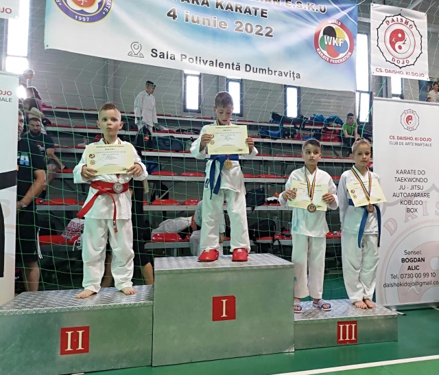 - Puicea Sergiu – locul I kata indv, locul I kata echipe baieti, locul III kumite wkf