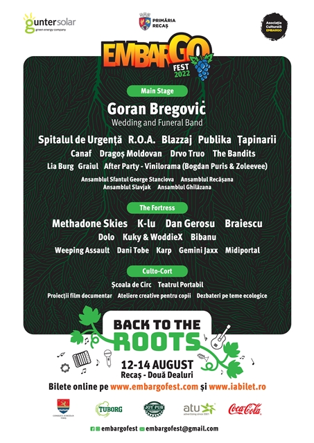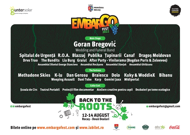 Cea de-a III-a editie a Embargo Fest are loc in perioada 12-14 august 2022, langa orasul Recas, locatia Doua Dealuri, iar vineri 12 august, Goran Bregovic va fi prezent in fata publicului din Banat alaturi de Wedding and Funeral Band.