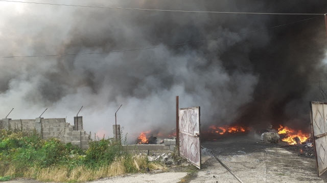 Initial, suprafata pe care s-a manifestat incendiul a fost de aproximativ 400 mp, dupa care s-a extins la 2000 mp de deseuri plastice aflate pe platforma, dar si 500 mp din acoperisul uneia dintre constructii.