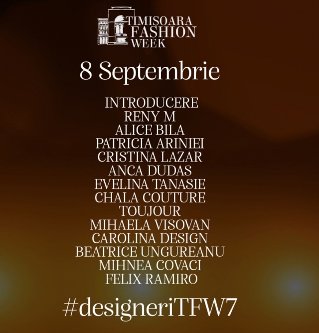 Timisoara Fashion Week, organizat de Rodica Costea si prezentat, ca in fiecare an, de Cosmina Pasarin, va reuni designeri din Romania si din strainatate, dar si vedete si influenceri, cum este Ana Morodan. O alta surpriza va fi prezenta lui Dorian Popa, vedeta colectiei designerului spaniol Felix Ramiro, si a Adelinei Pestritu, brand ambasador Cupio.