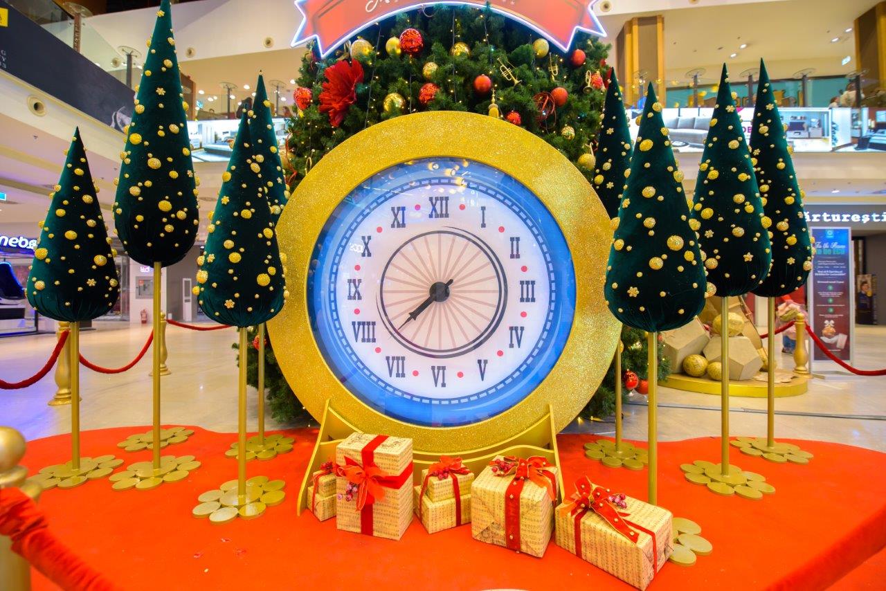 In zona Intersport strajuieste si un brad special, care la baza are un ceas imens ce aminteste de importanta petrecerii timpului alaturi de cei dragi, nu doar in perioada sarbatorilor. Tot in aceasta zona, te asteapta mii de luminite stralucitoare, care seamana cu niste licurici veseli. Note muzicale, dar si globuri luminoase completeaza atmosfera sarbatorilor de iarna.