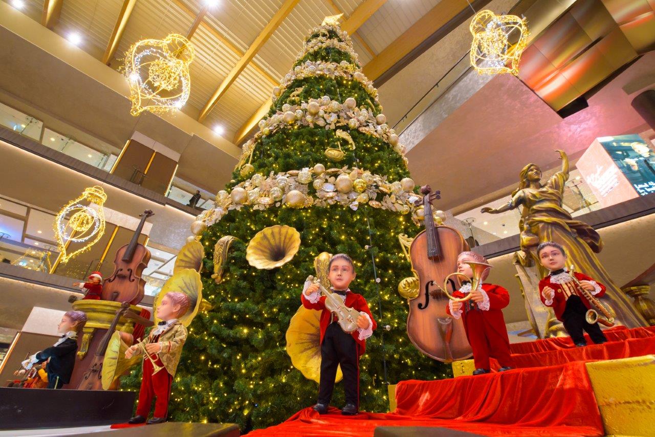 In Atrium esti intampinat de maiestuosul brad – vestitorul celui mai asteptat sezon, cel al cadourilor. Note muzicale dansatoare, instrumente aurii ce par ca sustin un concert, globuri inedite, dar si luminite sclipitoare dau viata bradului. La baza lui se afla o orchestra, care completeaza tabloul muzical. Cantaretii, impreuna cu instrumentele lor te asteapta sa le asculti melodiile si sa ii vezi dansand. De fiecare data cand manerul decoratiunilor este invartit, mecanismul este pus in miscare, iar personajele incep spectacolul, incantandu-i pe cei mici.