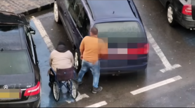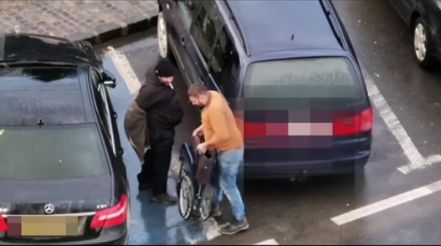 Un barbat aflat in scaun cu rotile, despre care se spune ca a cersit in Brasov, a fost surprins in timp ce se ridica in picioare si si-a aprins o tigara mergand spre masina, relateaza Transilvania365.ro, care publica postarea pe Facebook a unui politist din municipiu.