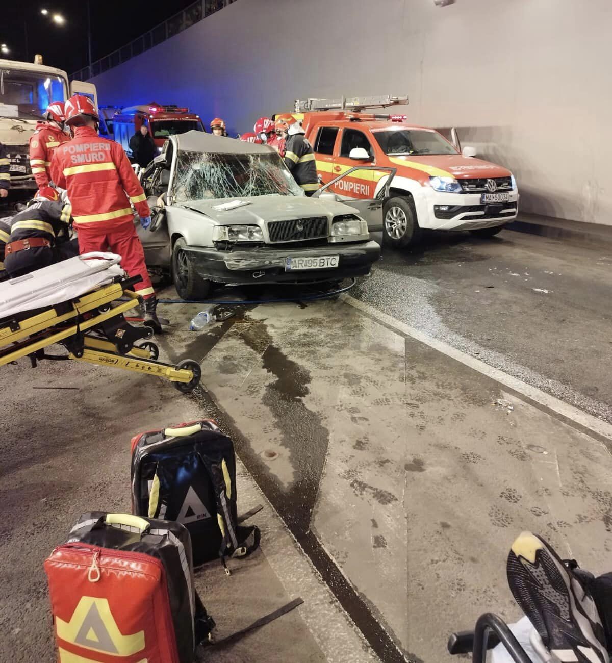 Masina a patruns pe sensul opus de mers si a intrat in coliziune cu peretele interior al pasajului subteran, apoi a fost proiectata intr-o autoutilitara, care circula din sensul opus de mers, condusa de un alt barbat in varsta de 42 de ani.