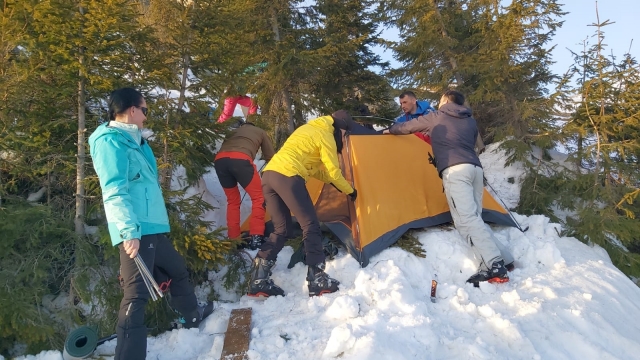 „Am identificat un platou excelent pentru instalarea corturilor. O proba de rezistenta la frig, pentru ca sacul de dormit nu e la fel de confortabil ca patul de la cabana, pe care candidatii trebuie sa o treaca, in perspectiva evaluarii finale.