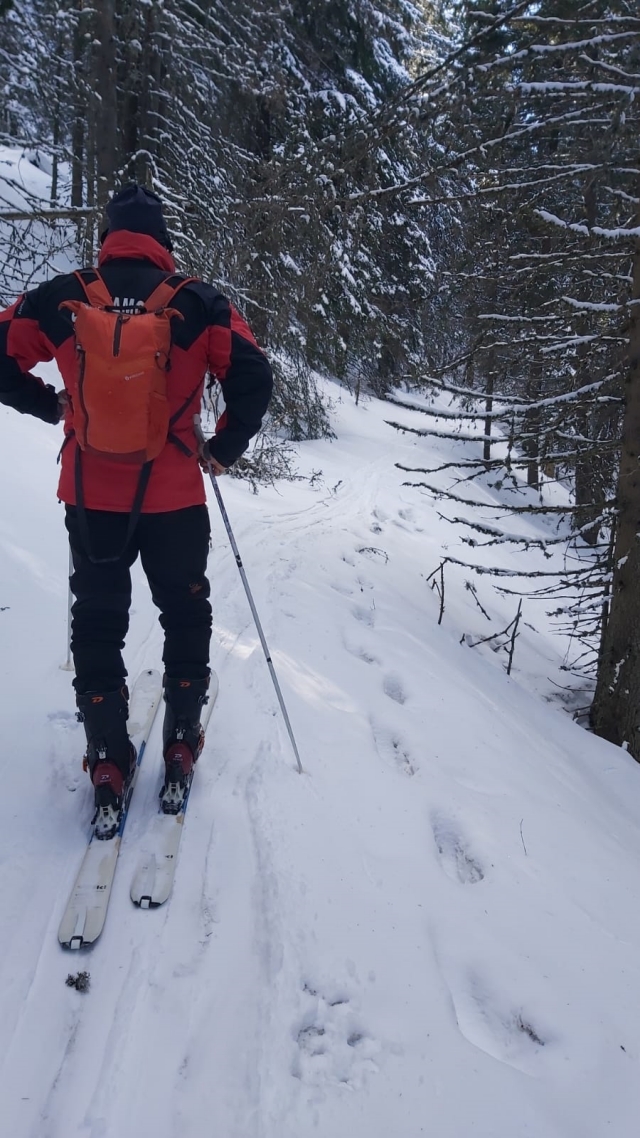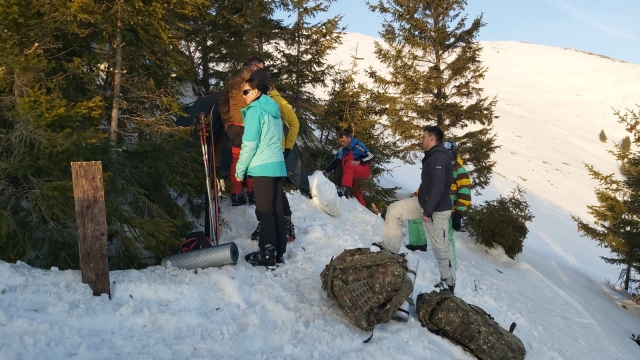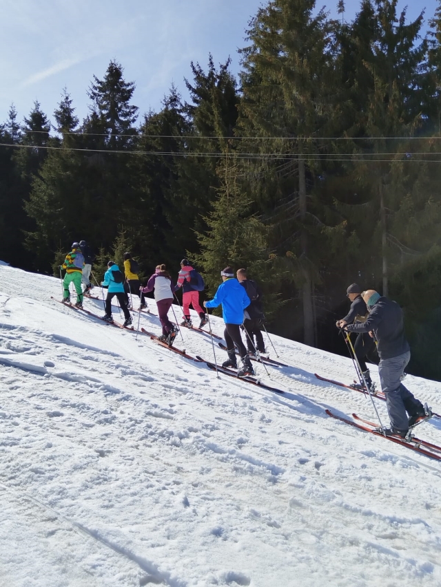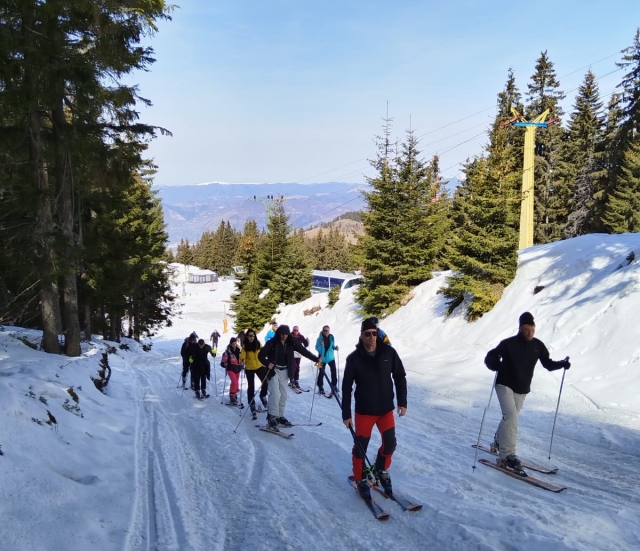 Traseul pana la locul de campare, extrem de solicitant pentru candidatii la gradul de sublocotenent, a fost parcurs pe schiuri, chiar si in partea de urcare, in conditiile in care din echipamentul specific schiului de tura fac parte si pieile de foca, respectiv fasiile de material textil care se aplica pe talpa acestora pentru a permite urcarea pantelor fara ca schiurile sa alunece inapoi.