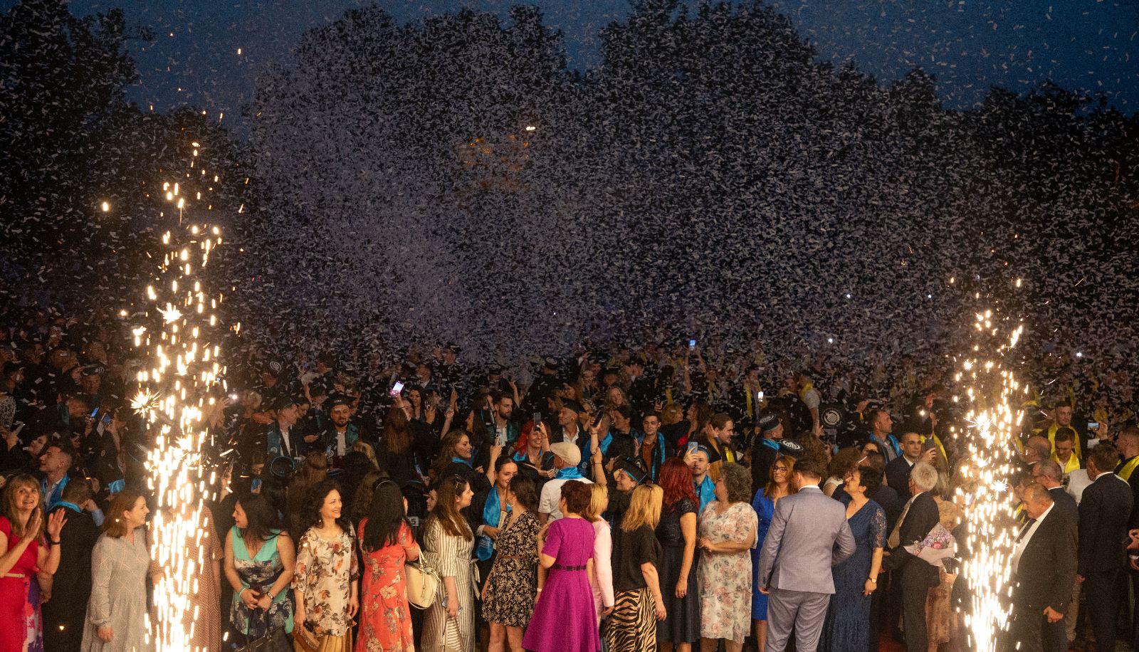 Discursuri motivationale, emotie, bucurie, mesaje motivationale, focuri de artificii, show de confetti, un mare concert, toate acestea au fost ingredientele unui eveniment extrem de reusit, de neuitat pentru cei 2.500 de studenti, parinti, profesori, prieteni si invitati, eveniment organizat impecabil de actuala conducere a USVT. (E.T.)