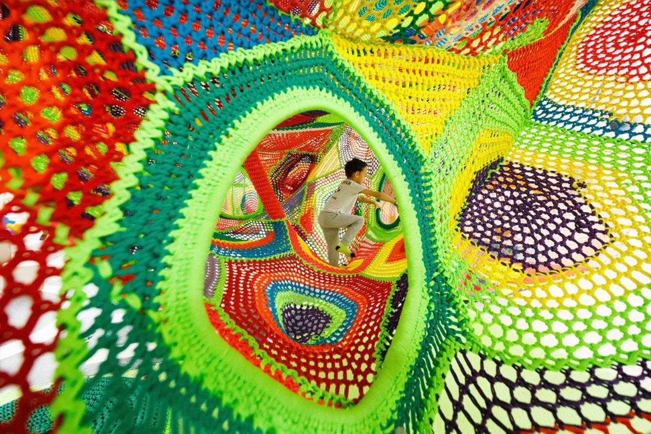 Iar pentru ca cei mici sa se poata desfasura in voie, plasa ocupa o suprafata de 100 mp si este dispusa pe 3 niveluri de inaltime, fiind, totodata, cea mai mare din Romania si Europa de Est.