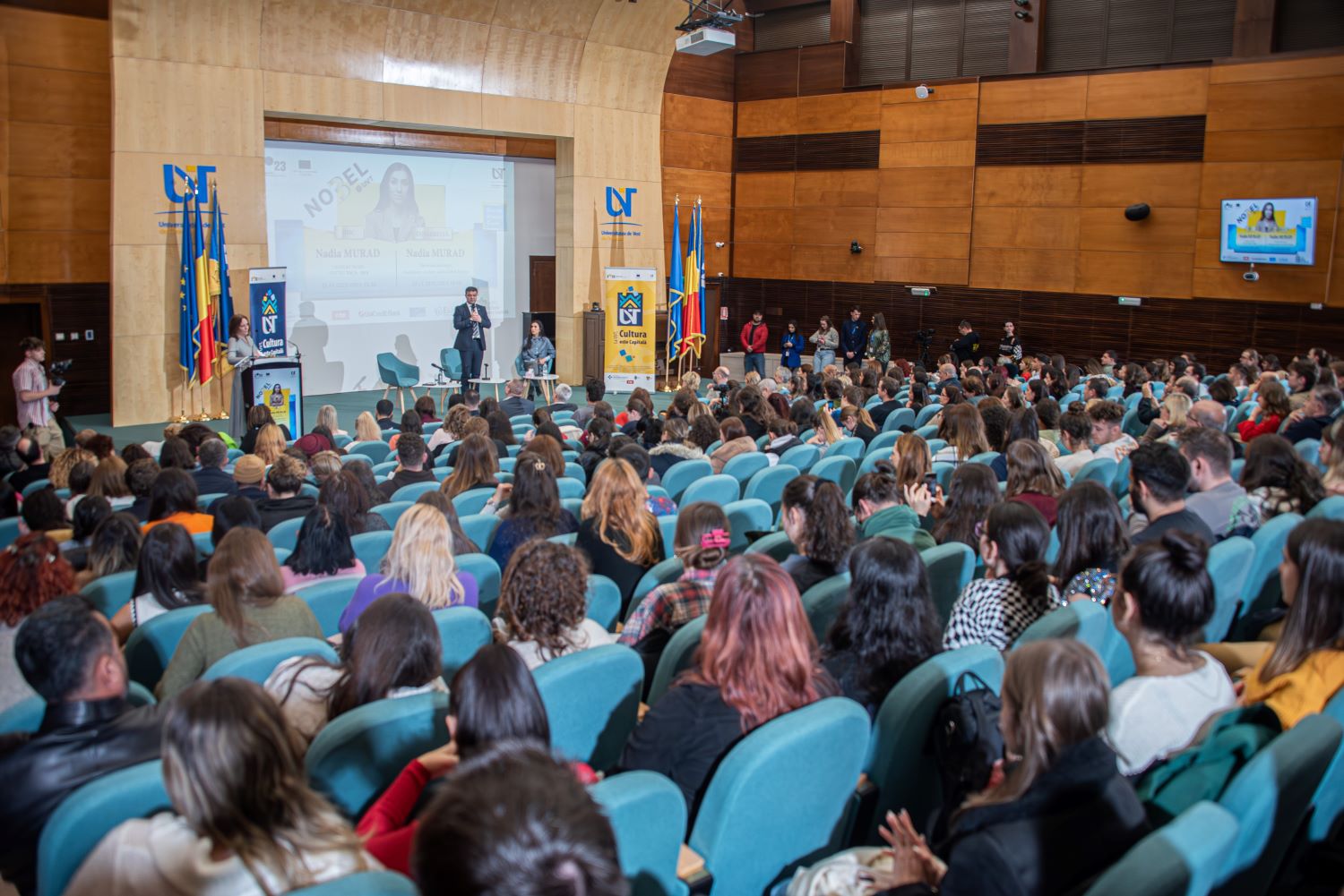Prima femeia care a avut taria de caracter sa demaste atrocitatile comise de autointitulatul ISIS a sosit in Romania. Laureata a Premiului Nobel pentru Pace, in anul 2018, Nadia Murad a devenit cel mai nou membru al comunitatii academice din Timisoara. Irakianka a primit titlul de Doctor Honoris Causa al Universitatii de Vest.