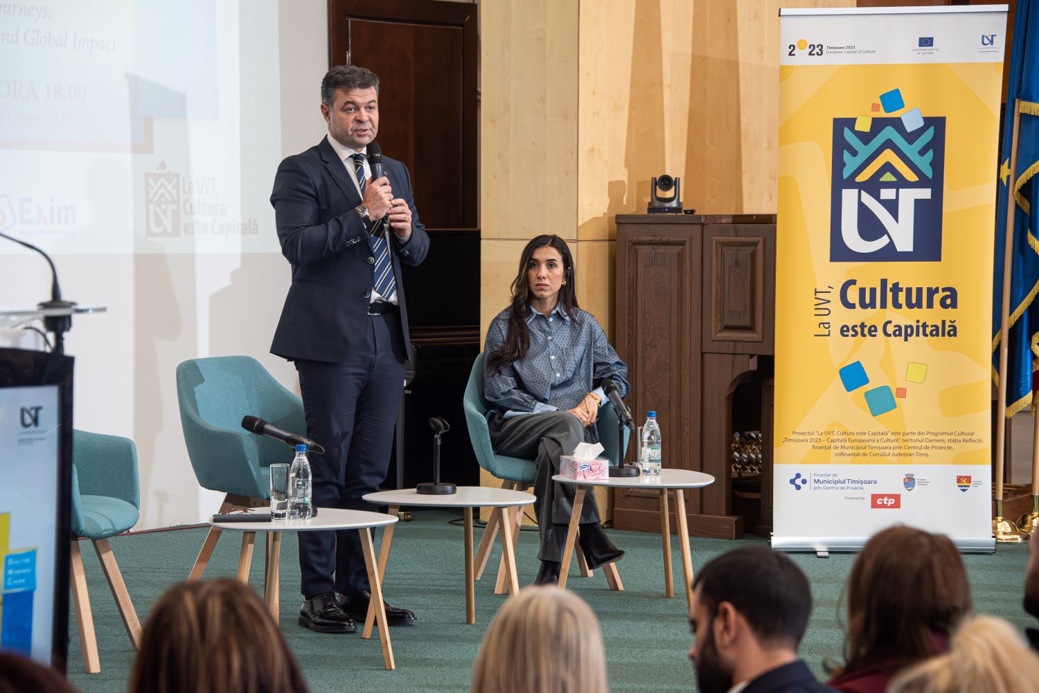 ”Doamna Murat este in prezent Ambasador al Bunavointei pentru Demnitatea Supravietuitorilor Traficului de Pesoane. Si este vocea multor celor care se simt oprimati”, explica rectorul UVT, Marilen Pirtea.