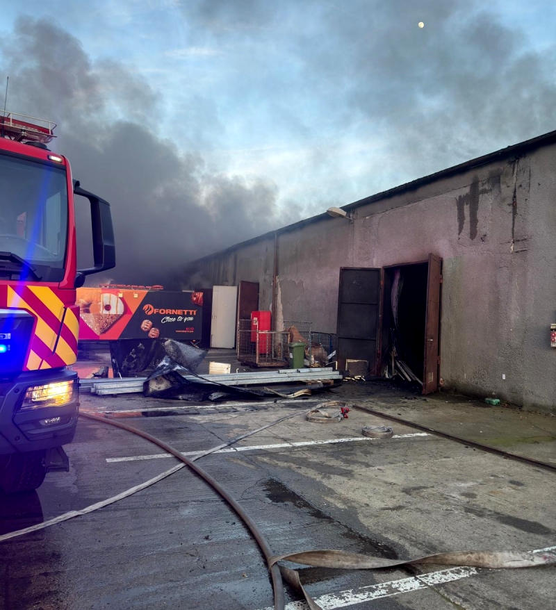 VIDEO / Depozitul companiei de produse de patiserie Fornetti din Timis, aproape mistuit intr-un incendiu. 148 de persoane, evacuate in siguranta