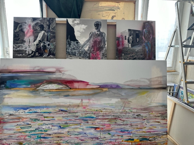 Azi ne invita sa ii admiram picturile si desenele – intervenții pe fotografii. Unele au in fundal o baza NATO. Momentele actuale vor fi descoperite in lucrari de ochiul atent. Dincolo de linie, accente neon, diverse medii de culoare, siluete, un AKM, un mesaj, etc.