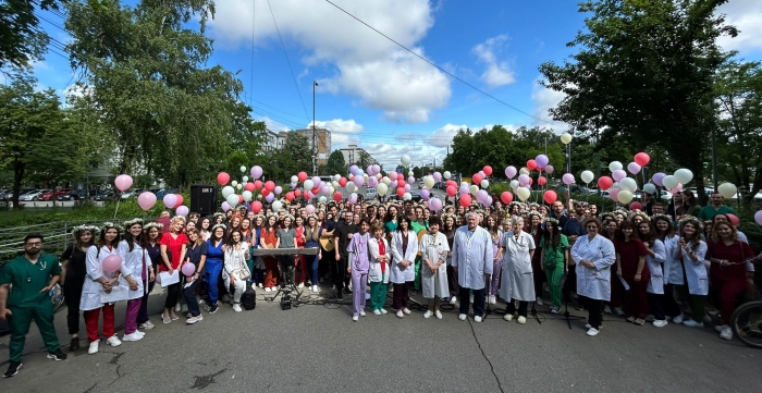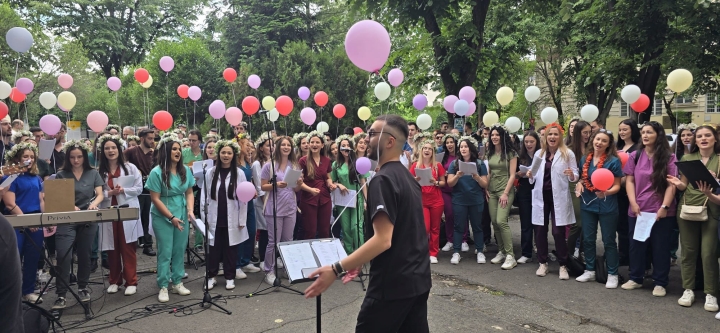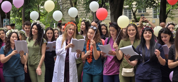 „Au cantat si ne-au incantat. Studentii anului 6 din cadrul UMF au creat un moment artistic autentic si memorabil, astazi, in curtea spitalului nostru. Versurile melodiilor lor sunt inspirate din trairile si amintirile din cei sase ani de facultate.