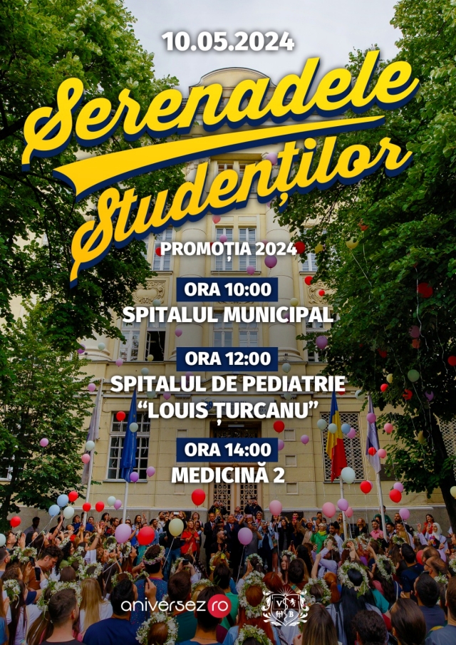 Serenadele Studentesti este un eveniment deosebit, un mic concert realizat de catre studentii anului VI. Acestia au impartasit cu membrii comunitatii academice versurile inspirate din trairile si amintirile lor din cei sase ani de facultate, puse pe linii melodice celebre, creand astfel un moment autentic si memorabil”, este mesajul transmis de conducerea UMF Timisoara.