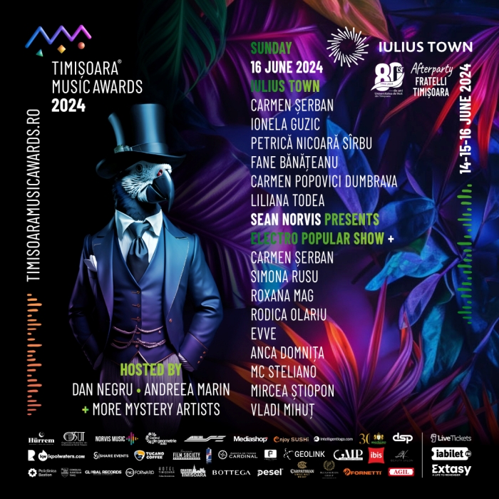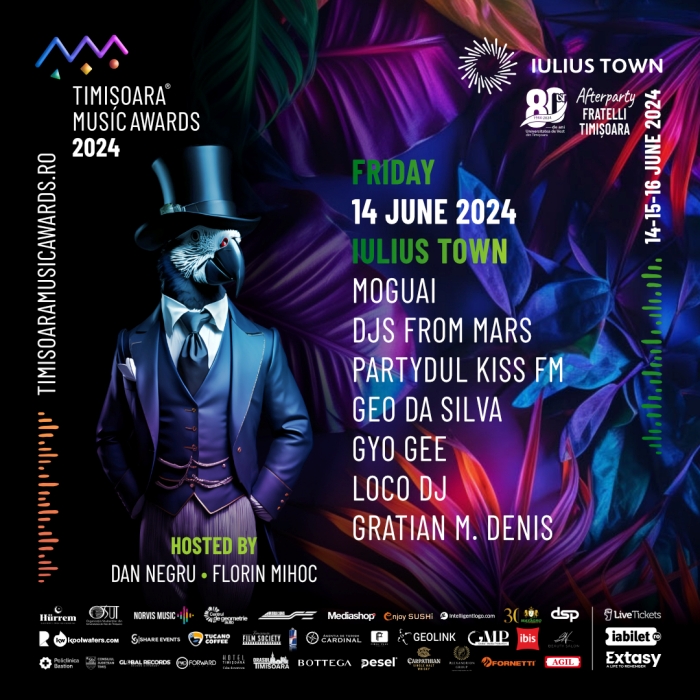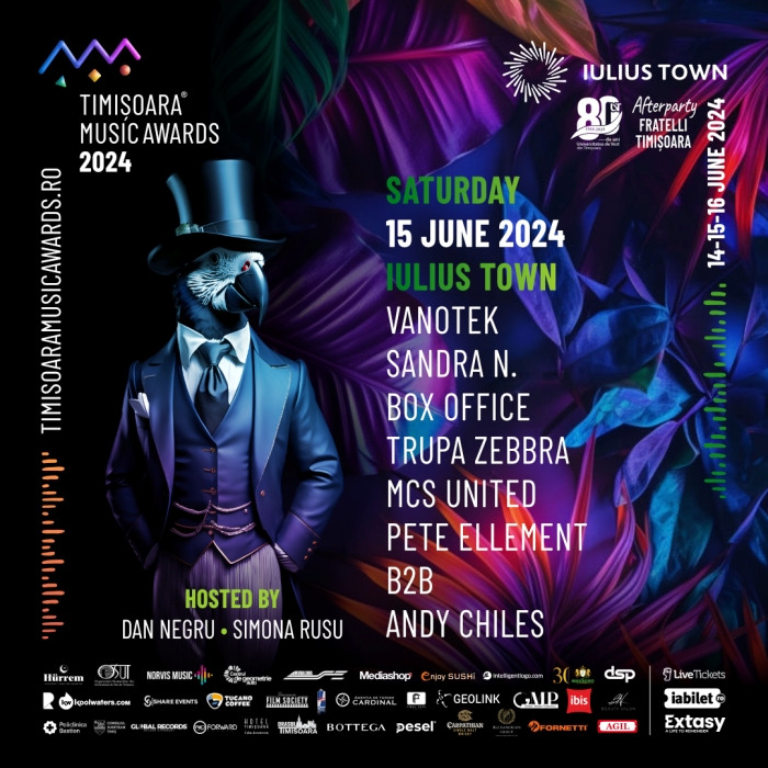 Trei zile de festival, cu peste 50 de artisti care vor performa pe scena, dar si mystery artists si multe afterparty-uri te asteapta in Iulius Town. Timisoara Music Awards incepe vineri, 14 iunie, in parcarea VIP UBC3, sub conceptul „Urban Jungle”, cu surprize speciale. Biletele sunt disponibile online pe site-urile iabilet.ro si livetickets.ro.