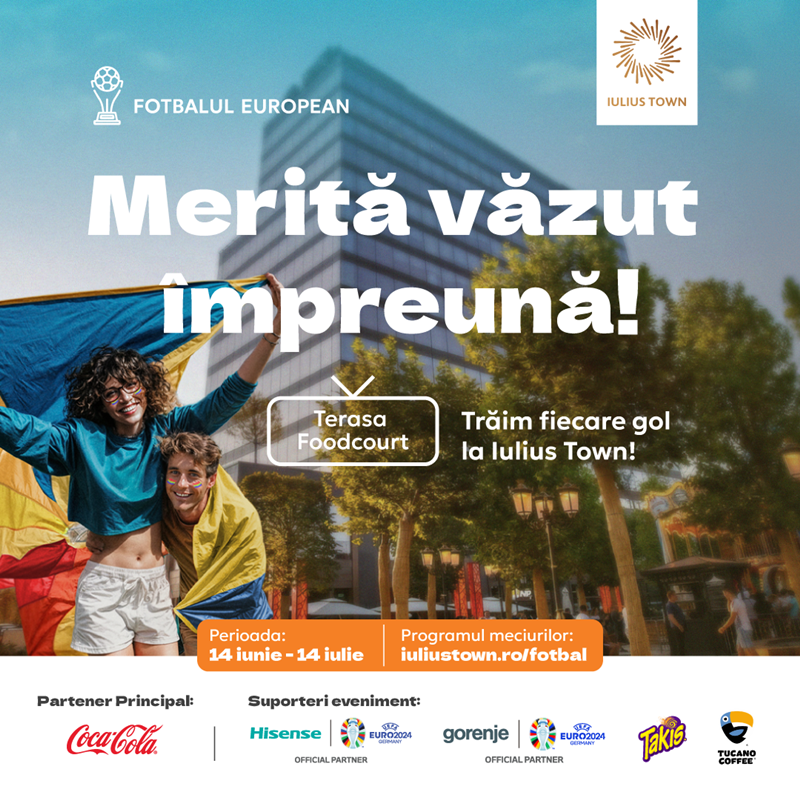 Nu uita ca in Iulius Town poti sa vezi toate meciurile de la Euro 2024, pe terasa exterioara din zona food court-ului din Iulius Mall. Afla mai multe pe site-ul Iulius Town!
