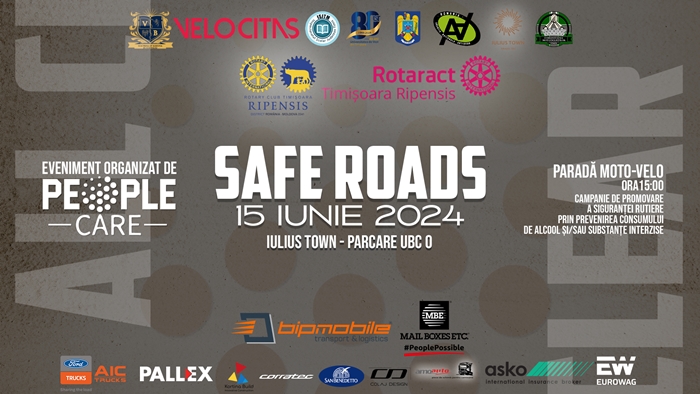 Sambata de la ora 10.00, in parcarea VIP din proximitatea cladirii de birouri UBC 0, va fi o parada moto, unde vor fi expuse trei masini de raliu, dar si doua camioane, in cadrul evenimentului Safe Roads – No Drugs, No Alcohol, Safe Travel. Voluntarii asociatiei vor discuta cu cei prezenti despre siguranta rutiera si despre prevenirea consumului de alcool si droguri.