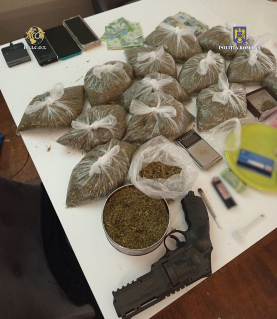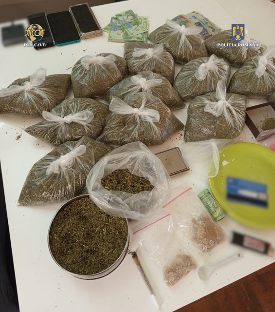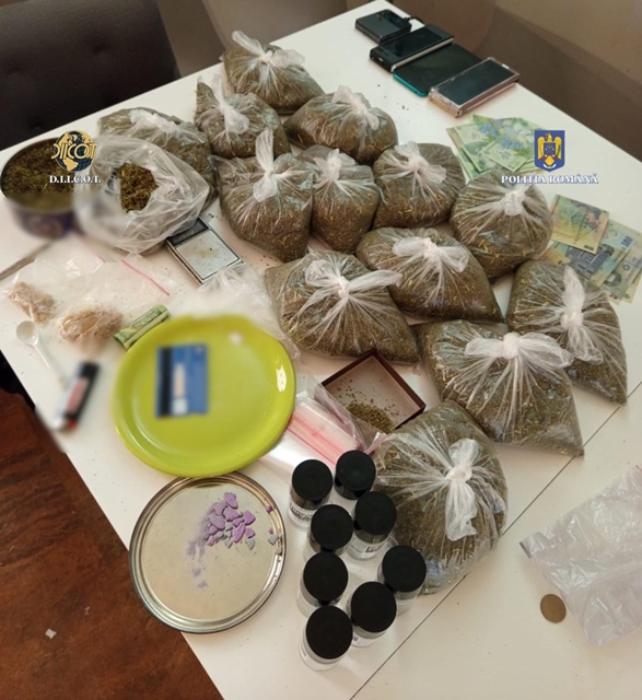 In urma perchezitiei domiciliare efectuate la data de 14 august au fost identificate si ridicate mai multe pungi si cutii continand peste 2 kilograme substanta vegetala impregnata cu MDMB-4en-PINACA si 5F-ADB (substanta psihoactiva), o cantitate de canabinoid sintetic destinata prepararii drogului de risc, mai multe flacoane continand acetona, cutii goale de ceai, obiecte purtand urme de substanta, un cantar de mare precizie, plicuri autosilante, sume de bani in lei si euro, unitati de stocare a datelor, precum si alte mijloace de proba.