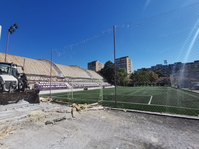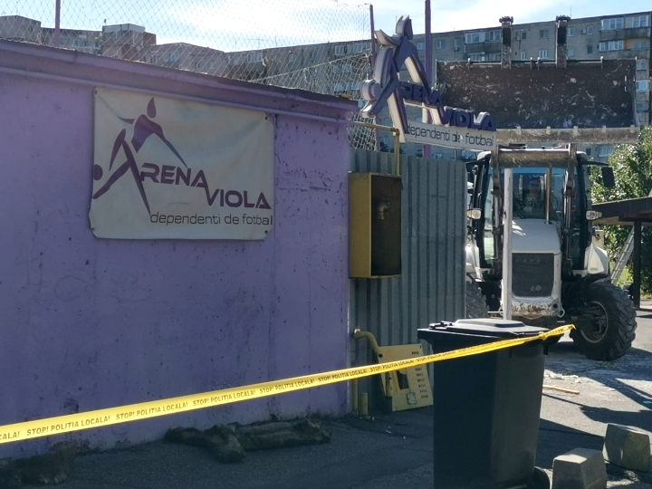 Demolatorii de la Colterm, insotiti de politisti locali, au descins, in aceasta dimineata, la Arena Viola, a fostului fotbalist Valentin Velcea. Buldozerele trimise de primarul Dominic Fritz au pus la pamant inca o baza sportiva din Timisoara, care functiona fara autorizatie.