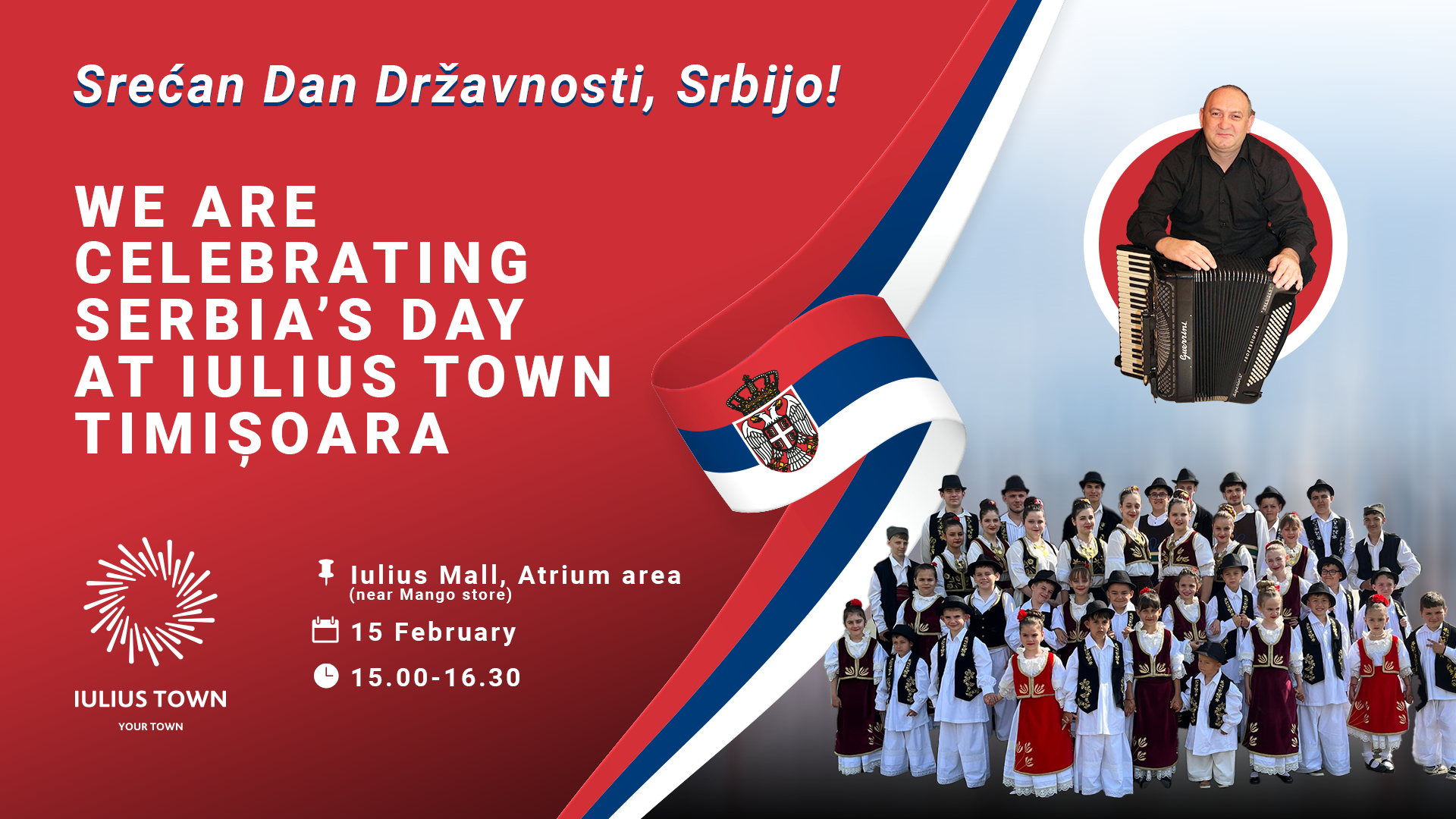 Tot sambata, va puteti relaxa in Atriumul Iulius Mall, unde, de la ora 15.00, vom celebra Ziua Serbiei. Pe scena va urca Ansamblul de dansuri traditionale sarbesti „Kruna” din Sanmartinu Sarbesc, iar de la ora 15.30 va avea loc un concert sustinut de Laza Vesić & Orchestra.