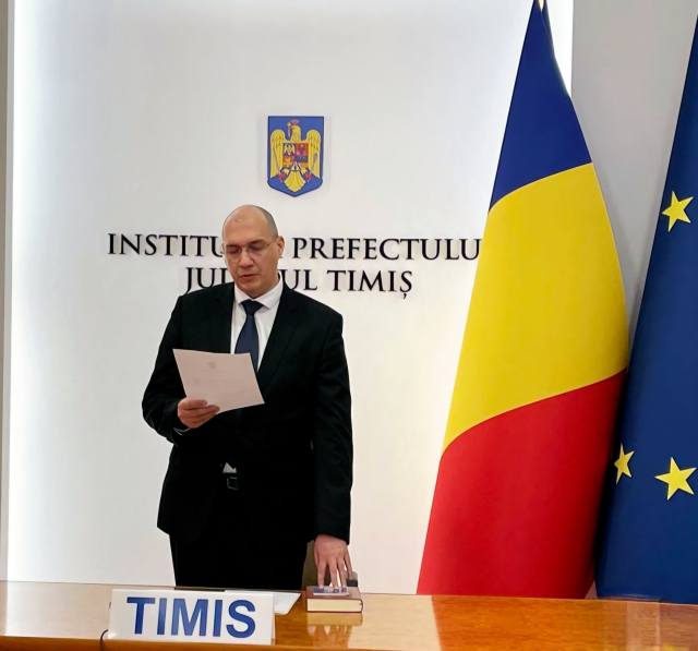 Astazi, 28 februarie 2025, Deian Popov, noul subprefect al judetului Timis, a depus juramantul de investire in functie, in cadrul unei ceremonii desfasurate in sistem videoconferinta, in prezenta reprezentantilor Ministerului Afacerilor Interne.