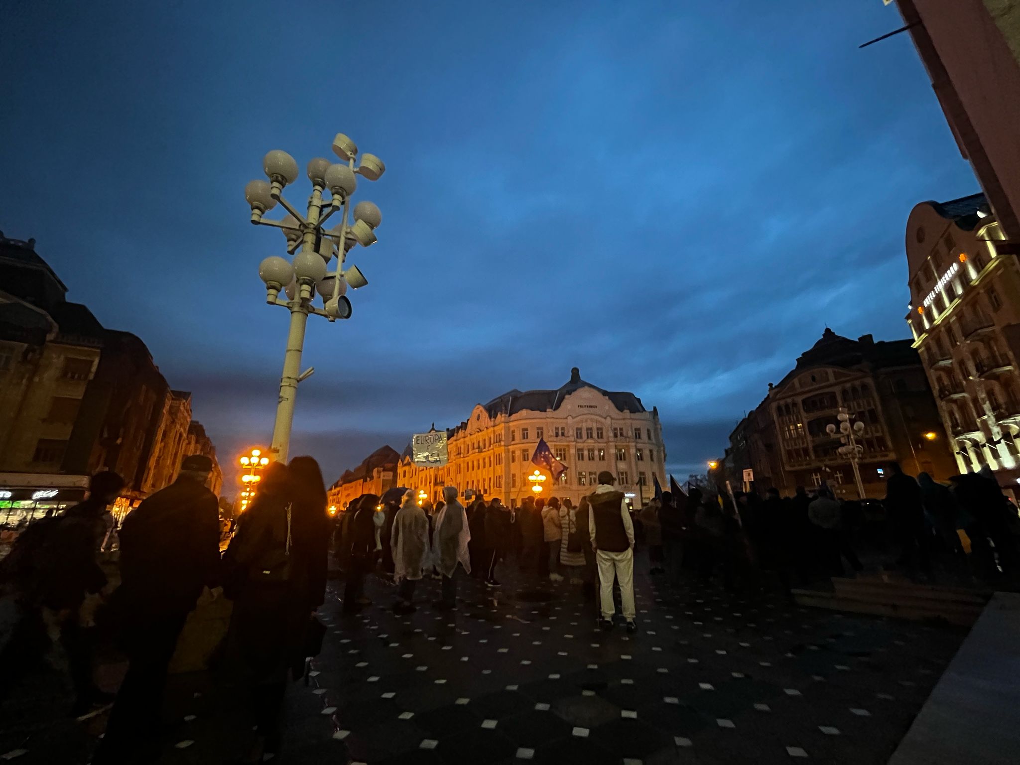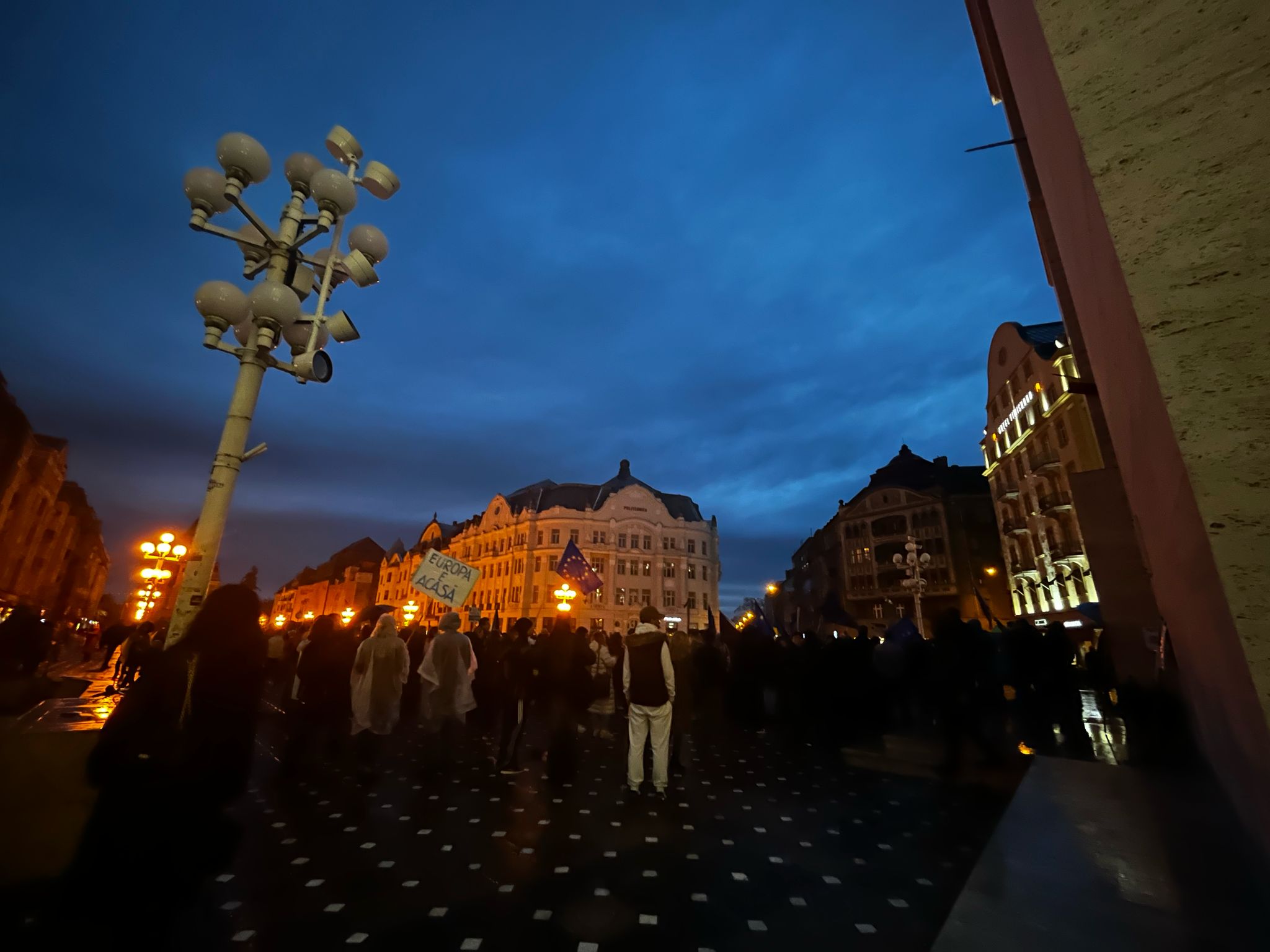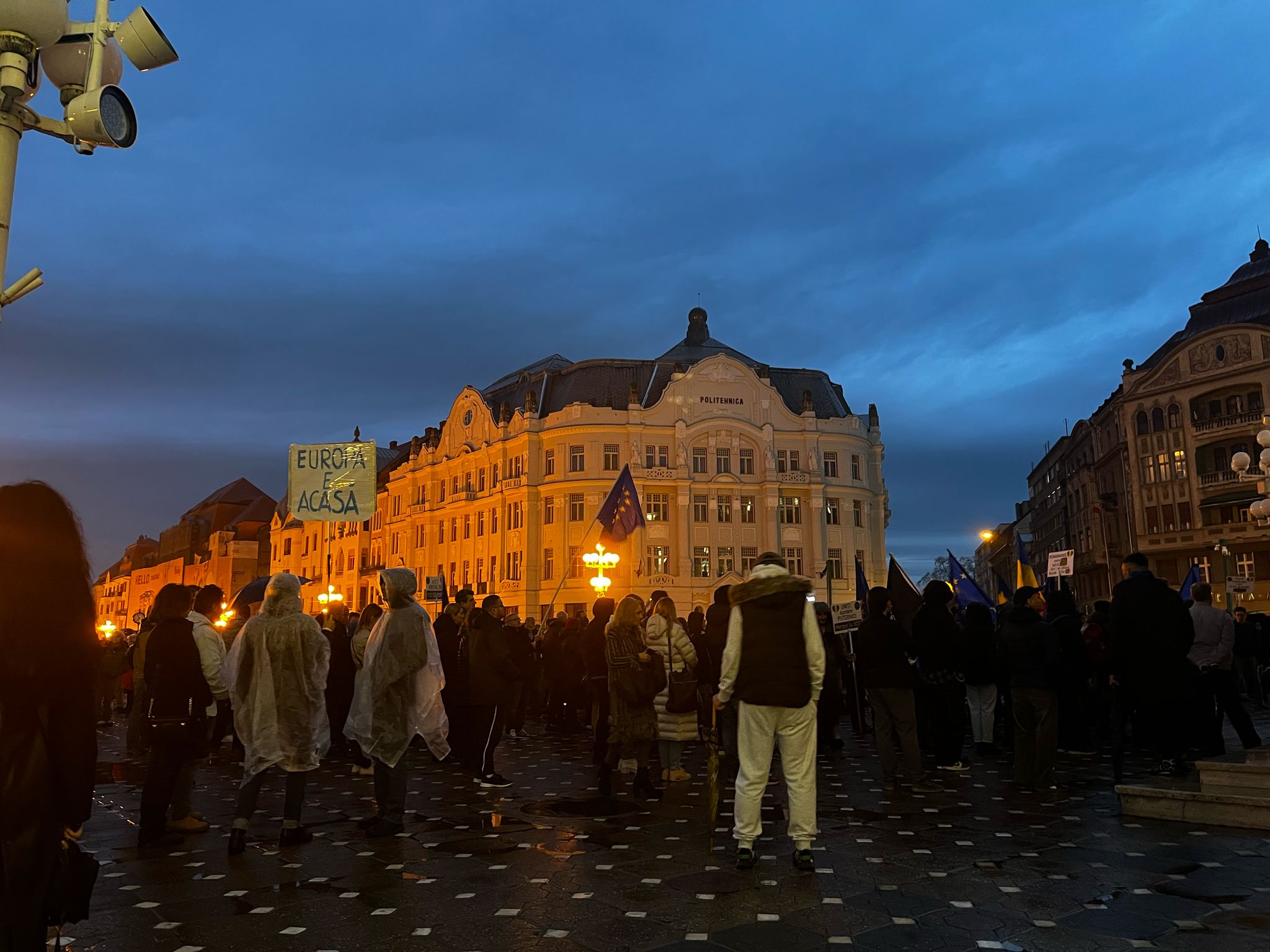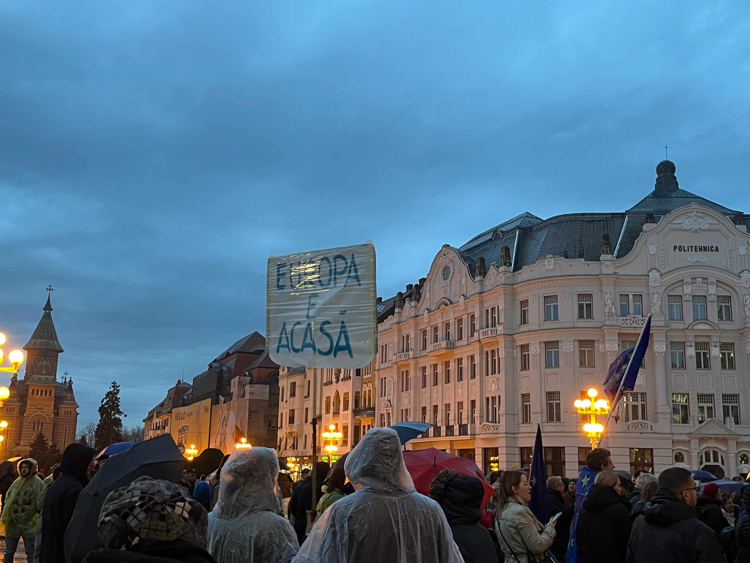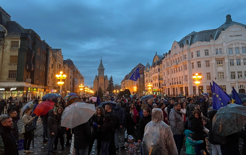 Sute de oameni s-au adunat pentru a-si face vocea auzita, scandand mesaje puternice precum: „Europa, Europa!”, „Atentie, Timisoara trezeste toata tara!”, „Romania, nu uita, Europa-i casa ta!”, „Azi in Timisoara, maine in toata tara!”, „Vest, nu Est!”, „Timisoara nu e extremista!”, „Europa, nu Rusia!”, „Fara fascisti, fara legionari!”.