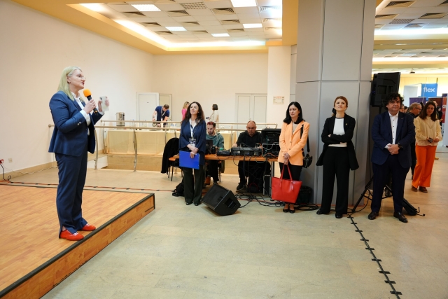 Un moment inedit a fost prezenta, din partea companiei Aquatim, a Roxanei Alexandru, absolventa a UPT, promotia 2024, cu diploma Magna Cum Laude (10 pe linie in toti anii de studiu si media 10 la examenul de licenta), care a vorbit despre rolul tehnologiei in companii cum este cea de apa-canal din judetul Timis, unde procese intregi sunt automatizate si operate de la distanta.