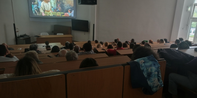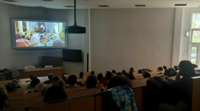 Luminile s-au stins, proiectarea filmului incepand. Dupa prima jumatate de ora, se putea observa ca unele persoane din sala urmau gestul preotului de a-si tine mainile stranse, parca pregatite pentru rugaciune.
