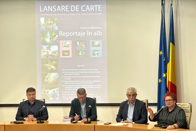 Universitatea de Vest a gazduit, marti, de la ora 16, un eveniment editorial de exceptie: lansarea a trei volume de reportaje semnate de cunoscuta jurnalista Ramona Balutescu. Cartile, reunite sub titlul comun Reportaje in alb, includ “Tratat de empatie, cu maini ciobite”, “Oamenii care incep in fiecare dimineata a vietii Ziua bolnavului” si “Biserici – transplant – randuri – sange – ganduri – farisei”.