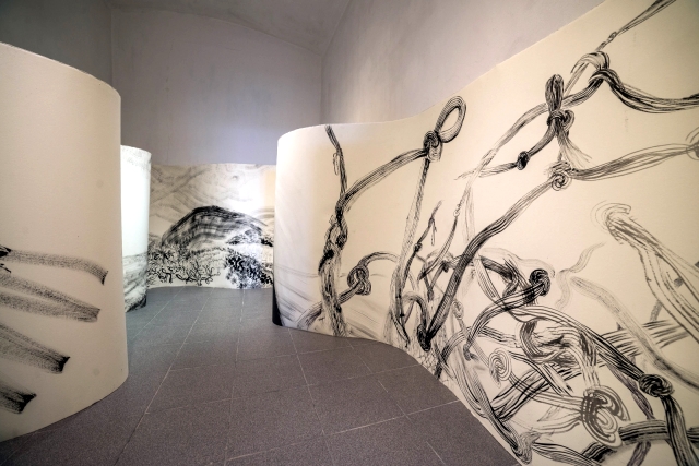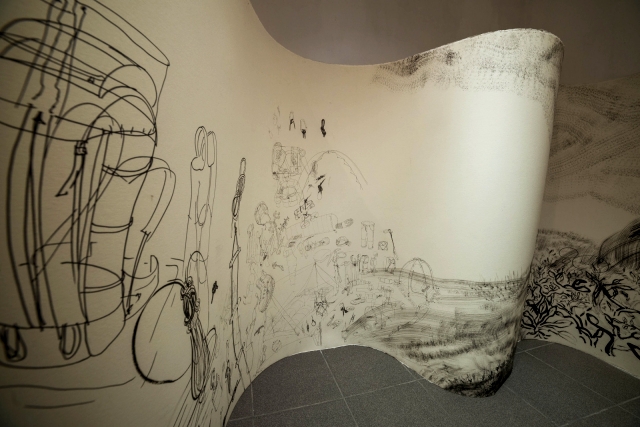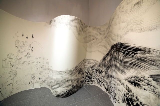 «Panoramicul „Munte de echipament” (2016), un diptic de peste douazeci de metri ce transforma un inventar de marfuri, plante si cladiri absurde intr‑un masiv montan.