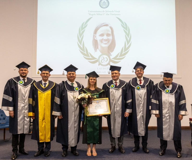 Profesorul Abigail BARRON a primit si titlul de Doctor Honoris Causa al USVT pentru contributia remarcabila in domeniul stiintelor vietii.