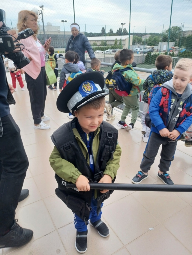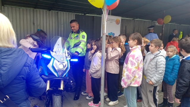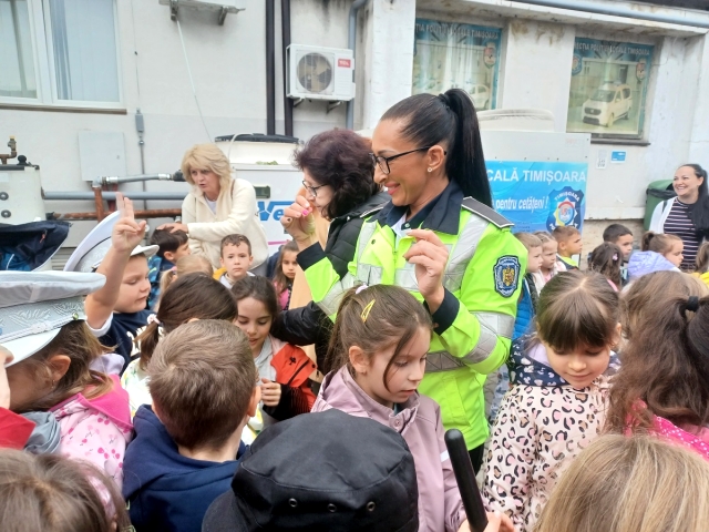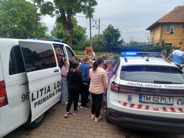 Peste 600 de micuti de la cele mai mici grupe de gradinita, scolari din clasele mici, de gimnaziu, dar si liceeni de la scoli precum Liceul Carmen Sylva, Liceul Jean Louis Calderon, Liceul Nikolaus Lenau, Liceul Azur, IC Bratianu, Emanoiul Ungureanu, Scoala Generala nr. 2, Liceul Wendy Kids, Gradinita din Sanmihaiu Roman, Scoala din Cerneteaz – Giarmata, Gradinita, Universul Copiilor, Liceul Tehnologic Energetic Regele Ferdinand I etc au dorit sa fie alaturi de noi, astazi, sa afle informatii despre activitatea politistilor locali, dotarile acestora folosite in teren, motociclete, autospeciale, fiind foarte incantati sa le si incerce si sa isi faca fotografii.