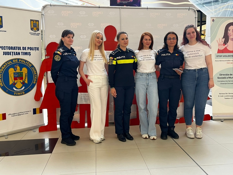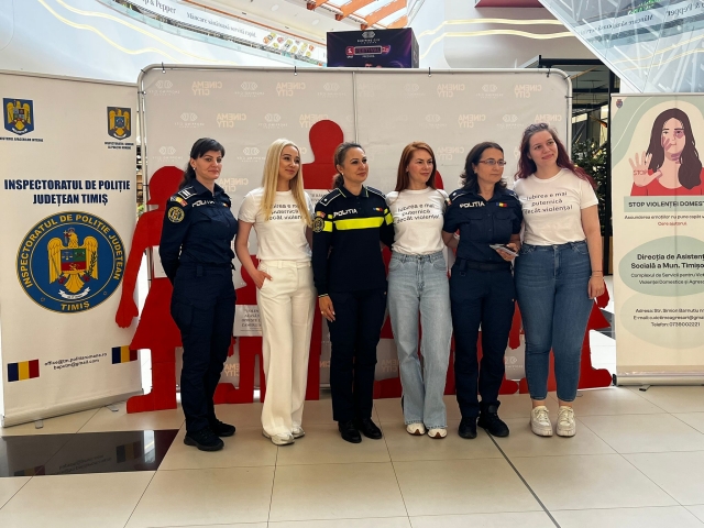 Politistii din cadrul Inspectoratului de Politie Judetean Timis, impreuna cu specialisti de la Complexul de Servicii pentru Victimele Violentei Domestice si Agresori, au organizat astazi, 28 mai, o activitate publica in centrul comercial Shopping City Timisoara. Evenimentul face parte din campania de informare „Martor Tacut!” si are ca scop atragerea atentiei asupra violentei domestice si incurajarea victimelor sa ceara ajutor.