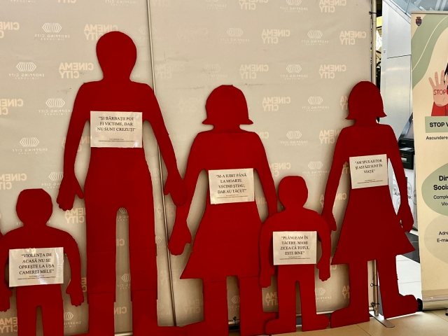 In zona de food court, au fost amplasate siluete rosii – simboluri ale celor care au suferit in tacere. Aceste siluete reprezinta femei, barbati sau copii care traiesc sau au trait abuzul si care, de multe ori, nu au avut curajul sa vorbeasca.